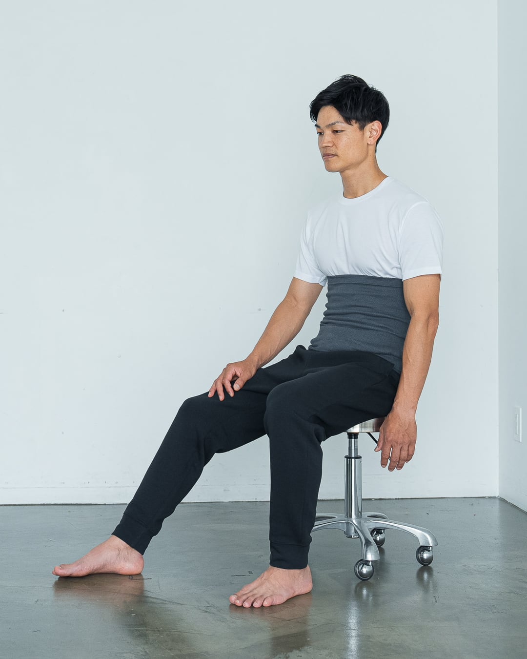 みぞおちあたりから鼠径(ソケイ)部あたりまでを包み込むようにご着用ください。 -